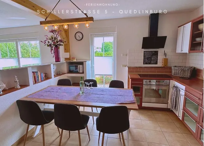 Ces propriétés Appartement Zum Quedel à Quedlinbourg de 80 m^2 est situé dans la partie vieille de Quedlinbourg, à moins de 16 minutes à pied de Collégiale Saint-Servais de Quedlinbourg. La Église Saint-Nicolas se trouve à seulement 14 minutes à pied la résidence tandis que l'arrêt de bus Stadtrundfahrt Quedlinburger Bimmelbahn se trouve tout près de l'établissement.